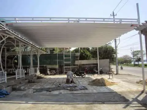 - Tính thẩm mỹ cũng là điểm mà khách hàng đánh giá cao khi làm mái xếp. Không quá sặc sỡ, mái xếp được thiết kế với những màu sắc đơn giản, chất liệu bạt cao cấp đem lại sự sang trọng, ấn tượng cho không gian lắp đặt.