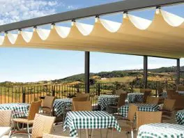 - Khung mái của mái che di động chữ A được làm từ nhôm, thép, inox không rỉ, có tính thẩm mỹ cao và độ bền vững chắc sẽ khiến cho không gian ngôi nhà bạn được bảo vệ an toàn nhất. Ngoài ra thì bạt mái được làm từ chất liệu cao cấp nhập khẩu bền màu, bền chất với thời gian. Tất cả những điều này đã tạo nên sự sang trọng, tiện lợi, thông thoáng và có độ thẩm mỹ cao cho không gian sống của gia đình bạn.